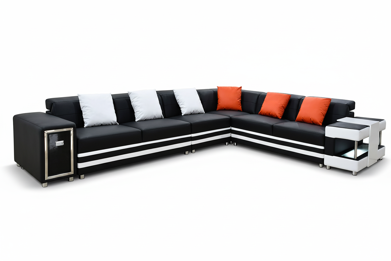 This smart sofa is absolutely beautiful, so elegant and sophisticated. It makes your space look very classy very well-made love the nice large size and to top it off the matching coffee table sets it off very nicely!!