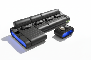 The Catina Small Leather Sectional is available in 10 different colors of genuine or bonded leather. Configure to fit your own style and specifications - L-shaped, left or right hand facing. This couch features storage space at both ends of the sectional, perfect for books or decorative items. These storage spaces are illuminated by a LED light. It can be optionally upgraded to multi-color lights that can be controlled by a wireless remote. This modern leather couch is sleek yet contemporary. This simple design will accent other pieces in the room and tie it together beautifully. To complete the look of your living space we recommend adding the armless chair and coffee table. Cup holders and USB ports are recommended for larger families to optimize maximum enjoyment. An additional bed function makes a great movie night with the family or space for unexpected guests. With the generous size of this sectional, family and friends will gladly socialize in comfort.