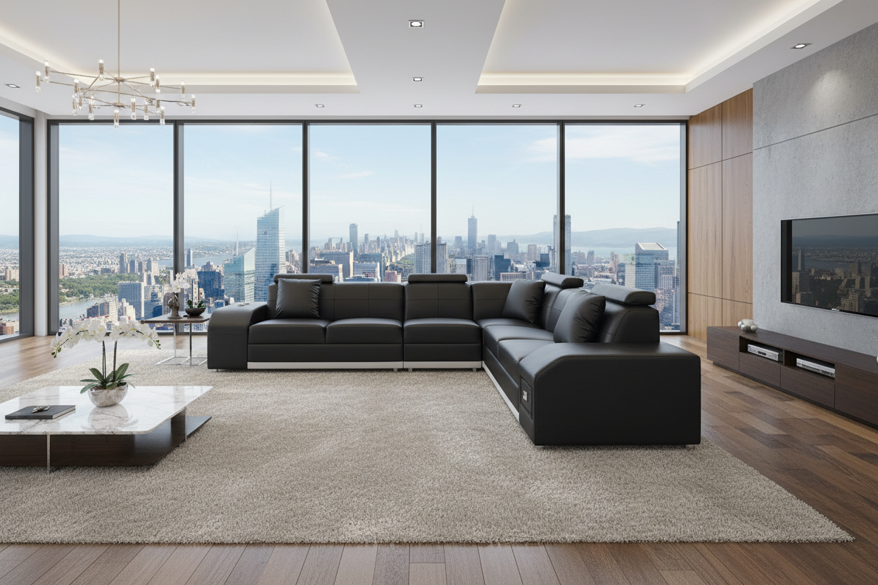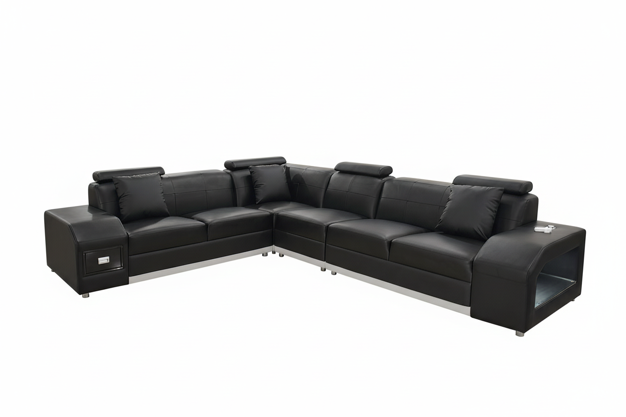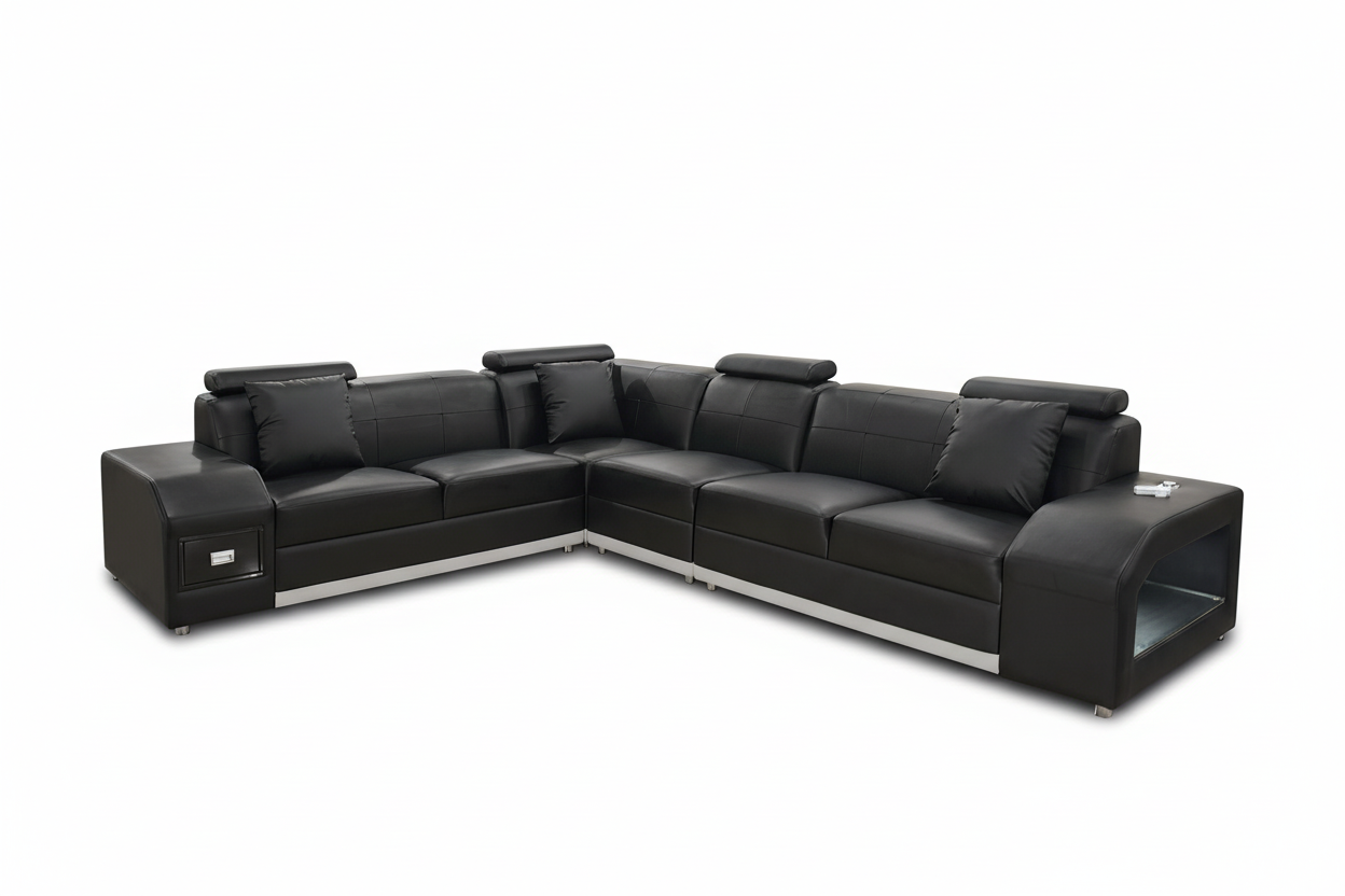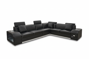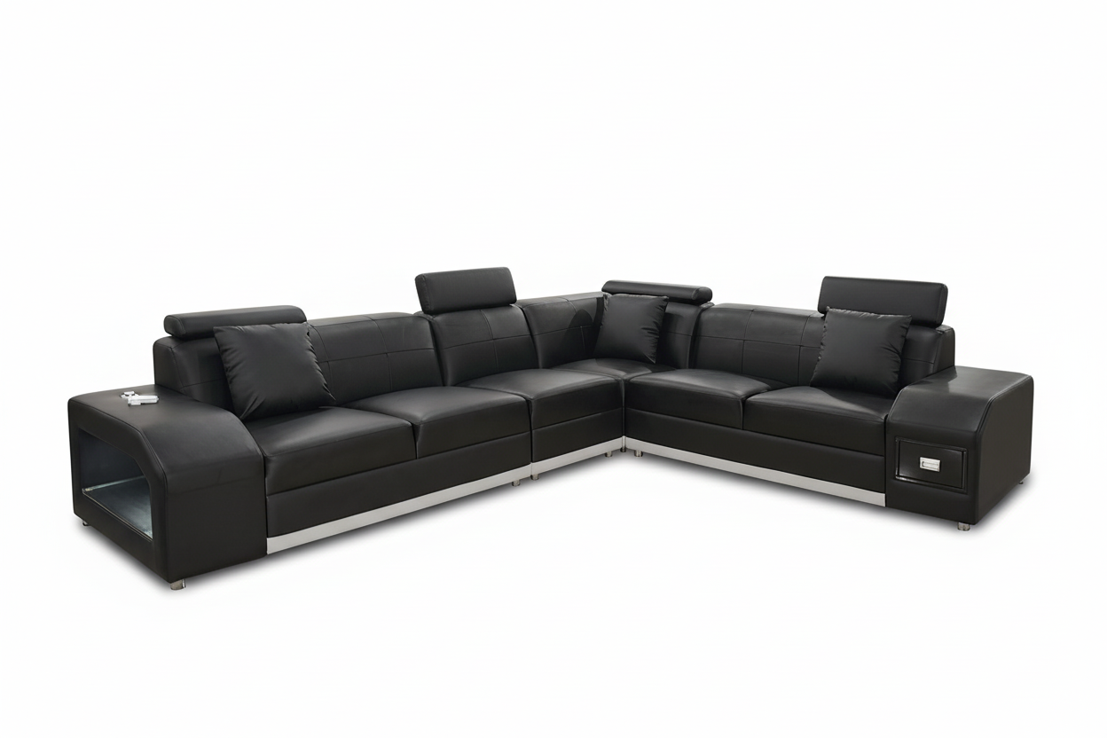 The Giada Leather Sectional with LED lighting is a luxurious seating solution for contemporary homes. Expertly crafted with high-grade leather, this sectional emanates elegance and resilience. Its LED lighting feature adds a touch of modern sophistication while providing ample illumination. The robust frame guarantees enduring support, while the adjustable headrest offers customizable comfort. Available in various colors, the Giada Leather Sectional with LED lighting is an ideal choice for those who desire both fashion and functionality in their furniture.