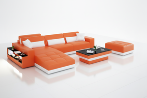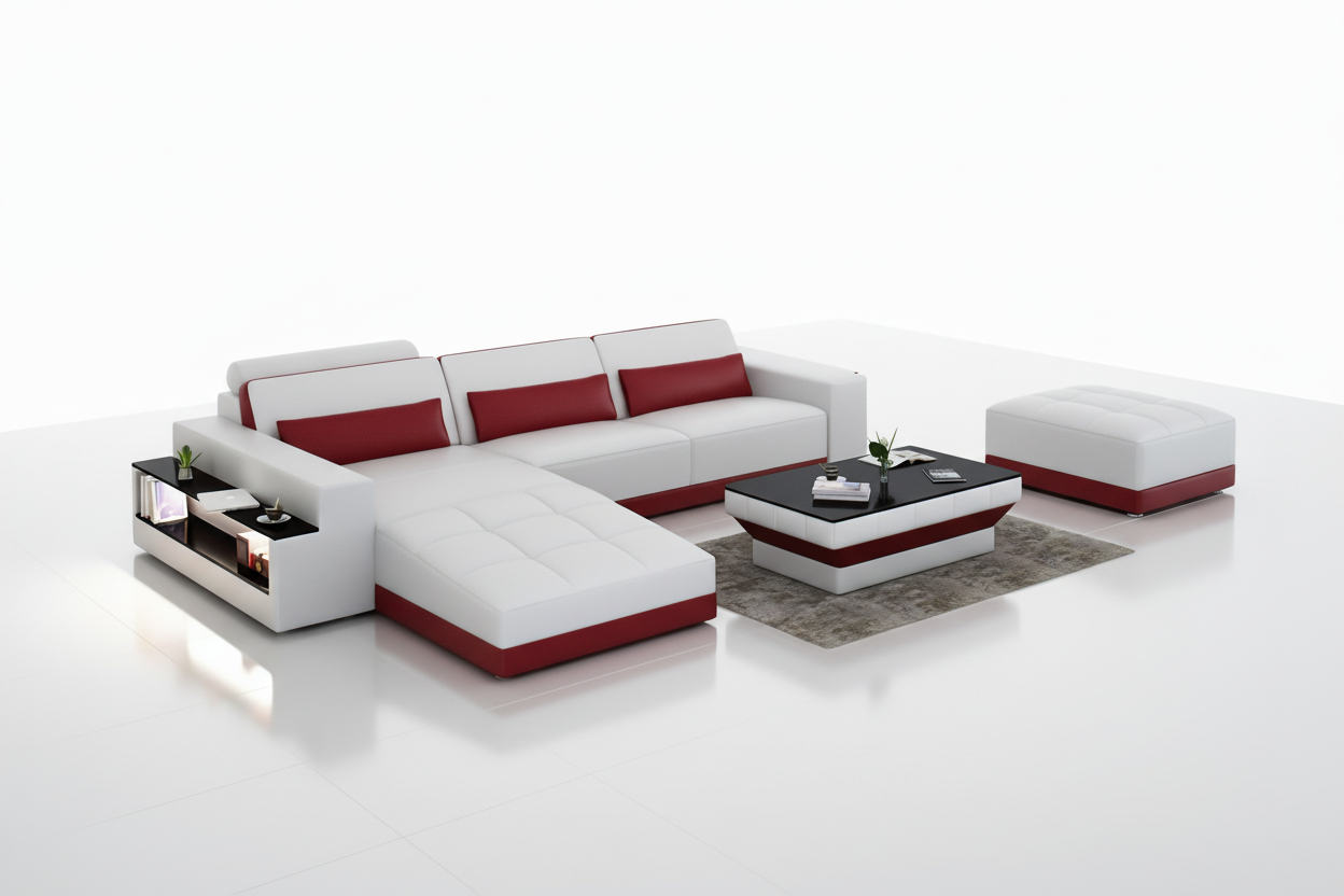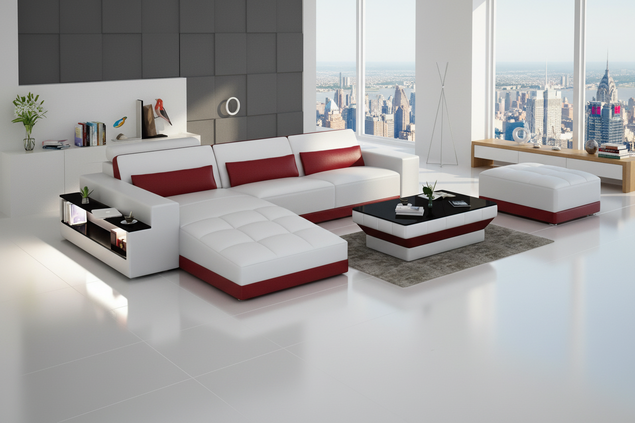 The red color makes it significant. Love the design but there are some dirt on the sectional and I am waiting for the leather cleaner from them. Will see what will happen further.